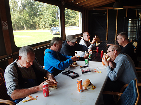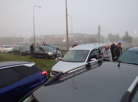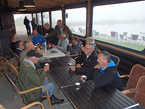 Marco is al om half zes bij me om zijn spulletjes in mijn auto te zetten. Nee koffie hoeft die niet dus en kwartiertje later zijn we al op de pad. Ik zal eens vandaag niet de laatste zijn die aankomt. Sterker nog Bats en Arno samen met Piet zijn me natuurlijk voor anders waren we de eerste geweest vandaag. Eigenlijk gelijk komen achter me aan Tjeerd Jr en Tjeerd senior, dan Theo en na elkaar Mike met natuurlijk zijn zwager Kees, Nico, WillemB, Willem en Erik en Arend Jan de Ruiter komt wat later. Die zou met Marco samen rijden maar moet misschien eerder naar huis.