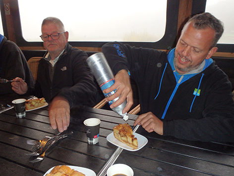 Appeltaart. Daar hoort natuurlijk een klodder slagroom op. Dat regelt Marco wel ff.
