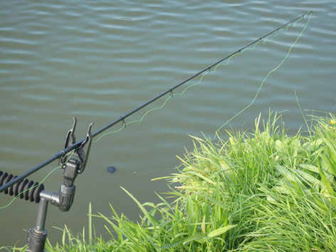 Natuurlijk de wet van Murphy. Doet je je hengel niet zekeren dan ben je die geheid kwijt. Er is een ondoordachtzaam moment met een praatje en ff naar links of rechts kijken, pellets schieten moet je toch met twee handen doen zo zijn er tal van seconden dat je ff niet je hengel in de gaten heb. Het is in een split second gebeurt met deze pellet visserij. De lijn staat bijna strak. Als de karper het zakkende aas pakt is dat direct en moet je alert zijn.