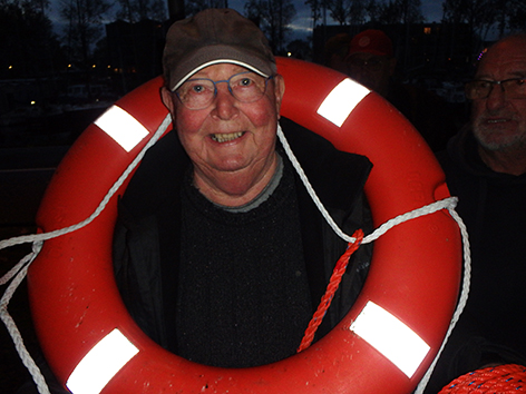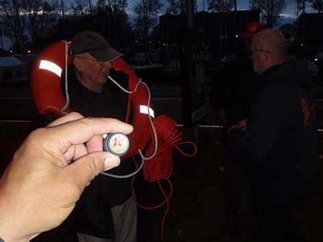 Ik weet dat Hans tegen een geintje kan dus kan het niet laten een reddingsboei mee te nemen woensdagochtend 8 oktober 2025 na het debacle van twee weken geleden. Vorige week was Hans er niet bij dus nu moest die met de billen bloot. Nee hoor die kan dat wel hebben. Vorige op week vakantie maar nu is die er weer bij. Vanmiddag naar het ziekenhuis om de pleisters van zijn benen af te halen zoals die zijn ingepakte benen laat zien. Nee dat heeft een aardig staartje gehad dus.