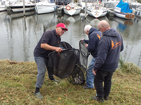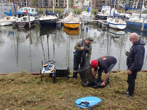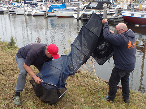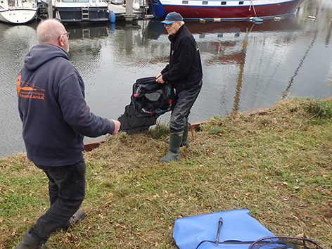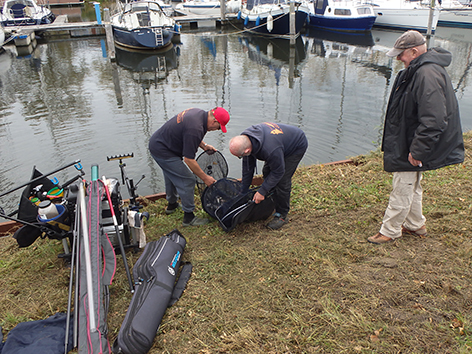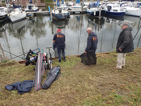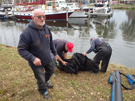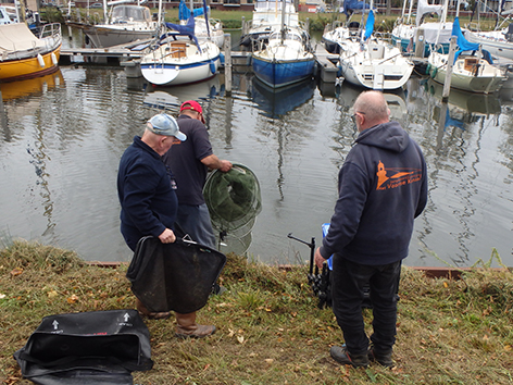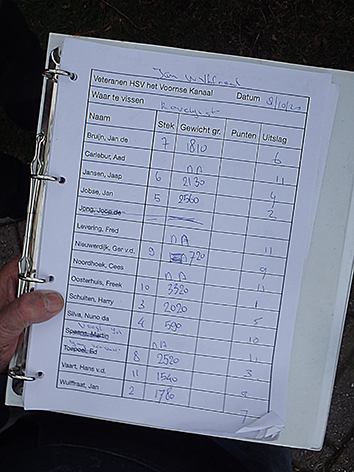 Dan zit het er al weer op. En gaan we wegen eens zien wat er allemaal is gevangen vandaag. Iedereen heeft in ieder geval wat aan te bieden aan de weegploeg en dat is wel eens anders geweest. Vooraan ziet ik wat voor ons gewone stervelingen niet aan de orde is. Alle spulletjes worden netjes weer opgeruimd door de groupies van Jan na het wedstrijdvissen. Zal nu thuis alles weer ordenen en eventueel schoonmaken hij het zelf doen. Of doet Tineke dat voor hem.