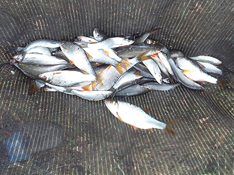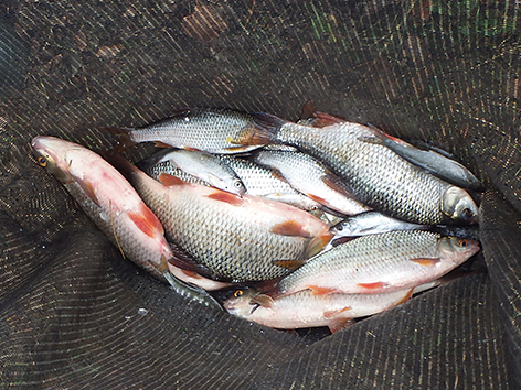 Maar na een kwartiertje vissen komen er al zo nu en dan betere formaat voorns kijken. Dan kan je er twee foppen en nemen de kleine vis weer de overhand