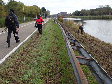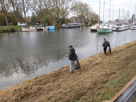 Al moet ik Engels praten de mannen kennen deze stek. Ik heb hier al gevist toen die nieuwe beschoeiing, zelfs nog geen riet of begroeiing er stond zelfs geen Tankstation. Maar door die stalen wand voor het grondwater te beschermen is er een mooie baarzen plek ontstaan. Toen al mooie voorns en moest je vlug zijn anders was je die kwijt aan een dikke snoek. Op nieuw water is er al snel vadertje essox te vinden achter de blank voorntjes aan.