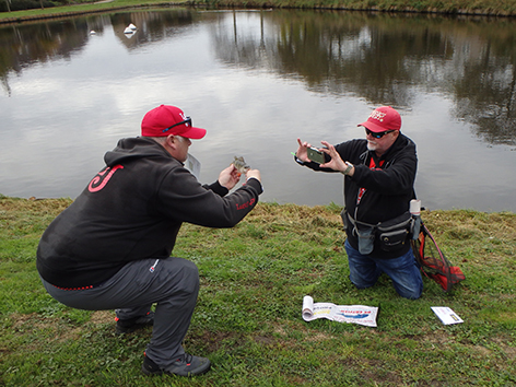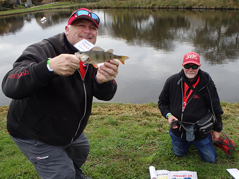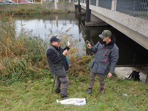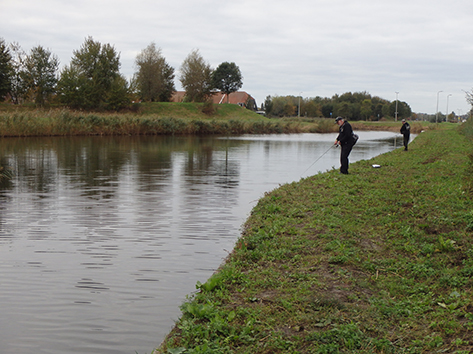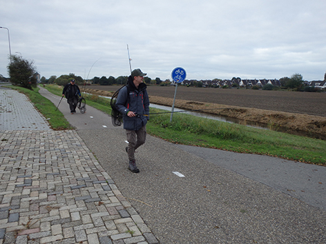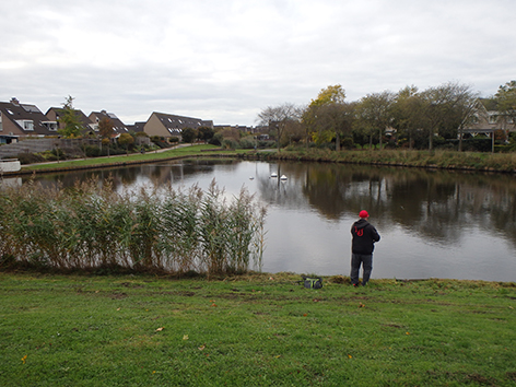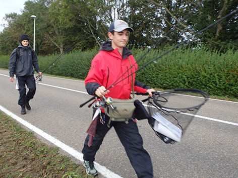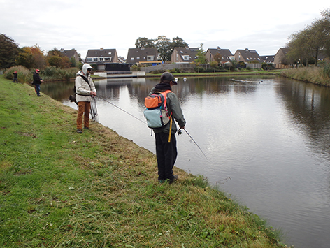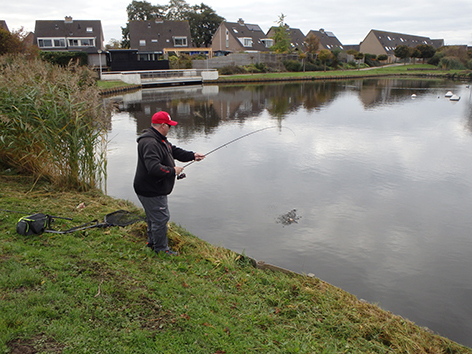 Het is frisjes maar door het wandelen met je spullen heerlijk weer om te roof vissen. Op de Jumbo vijver die wordt vakkundig helemaal uitgevist door de heren.