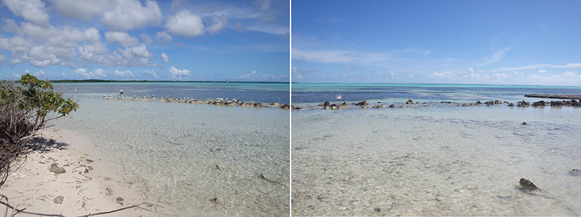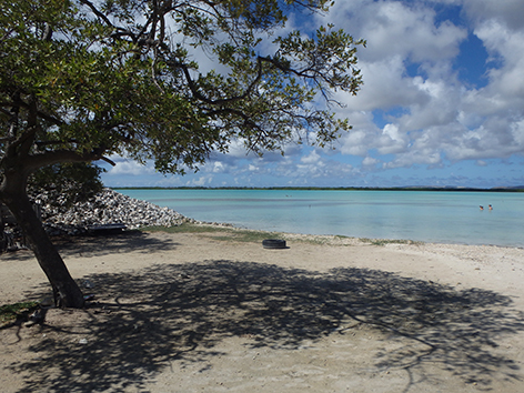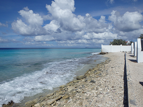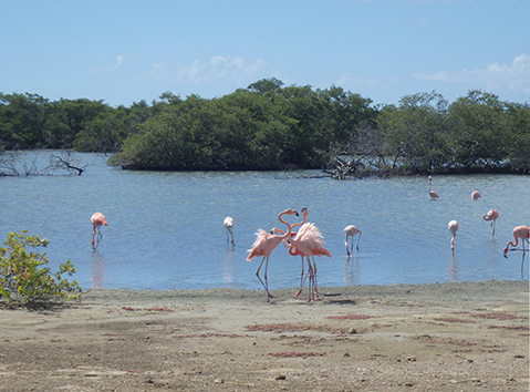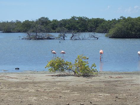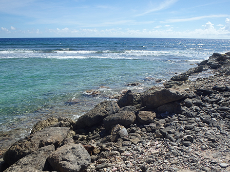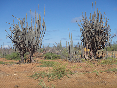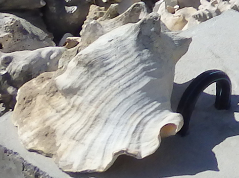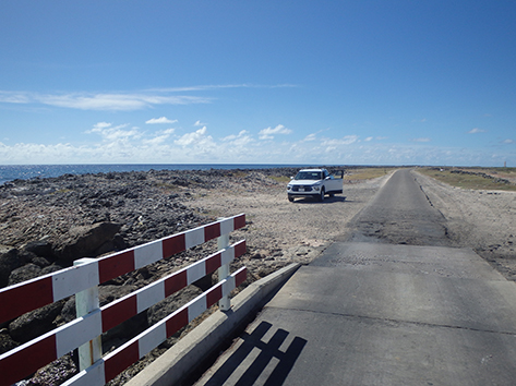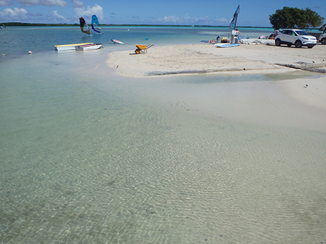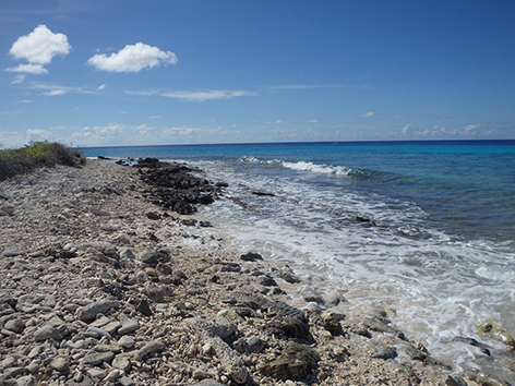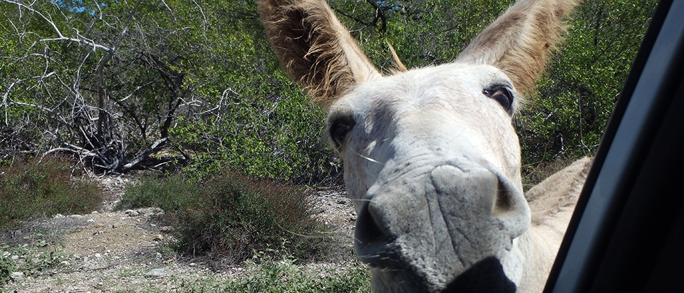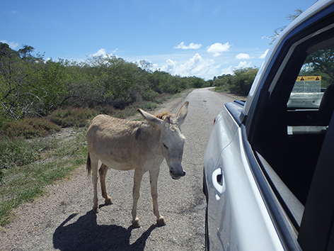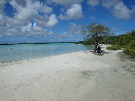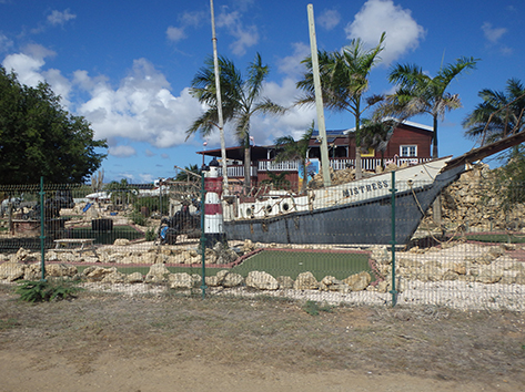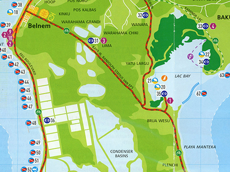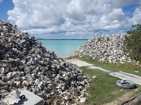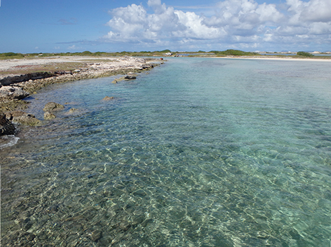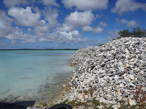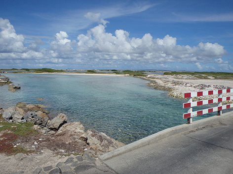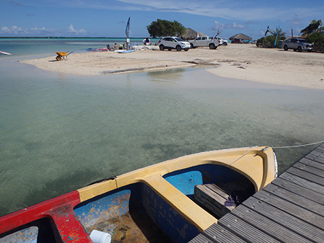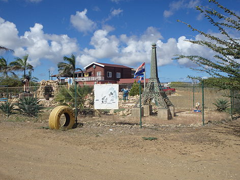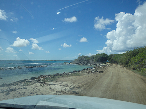 Herkenbaar deze stek aan de grote bergen met schelpen aan de andere kant van het Lac Bay meer aan de overkant. Dat moet een delicatesse zijn maar ik heb het niet geproefd. Ook niet achteraan gegaan om het restaurant te vinden waar ze het serveren. Nu het lange tijd droog is geweest en de mangrove bijna droog staan is het redelijk makkelijk om er te komen al is het stapvoets door de kuilen en stenen op de weg er naar toe. Trek er maar een dik uurtje voor uit voor het laatste stukje van Kaminda Sorobon de afslag Kaminda Lac.
