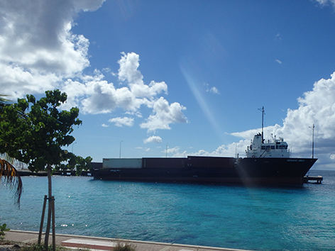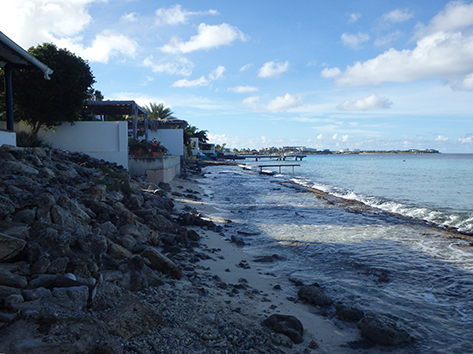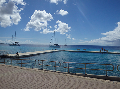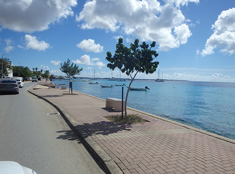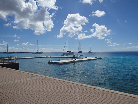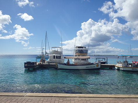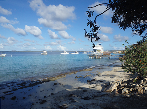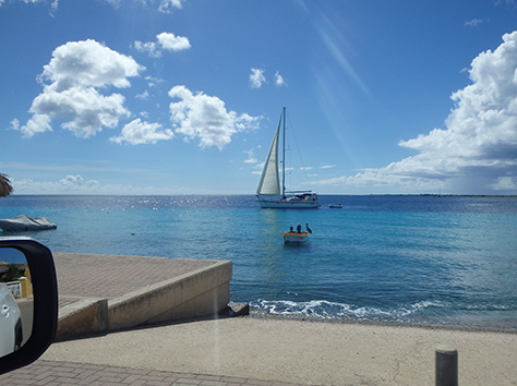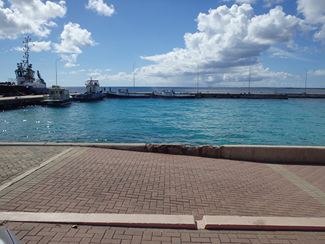 Als we dan weer Kralendijk binnen rijden langs de haven zien we dat toch als thuisbasis. Als er geen cruise boot ligt dan kan je langs de gehele haven rijden tot ons huisje toe.