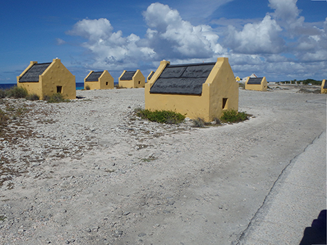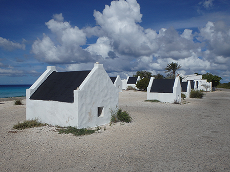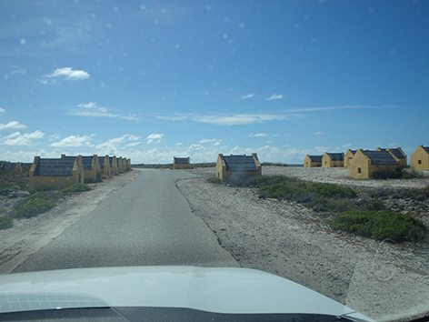 Dit zijn die slavenhuisjes zegt Marco dan onderweg waar zo’n ophef over is geweest en maandje geleden nog onze Willem en Maxima zijn geweest.