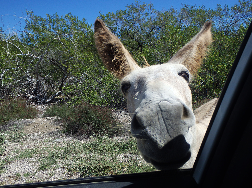 Herkenbaar deze stek aan de grote bergen met schelpen aan de andere kant van het Lac Bay meer aan de overkant. Dat moet een delicatesse zijn maar ik heb het niet geproefd. Ook niet achteraan gegaan om het restaurant te vinden waar ze het serveren. Nu het lange tijd droog is geweest en de mangrove bijna droog staan is het redelijk makkelijk om er te komen al is het stapvoets door de kuilen en stenen op de weg er naar toe. Trek er maar een dik uurtje voor uit voor het laatste stukje van Kaminda Sorobon de afslag Kaminda Lac.
