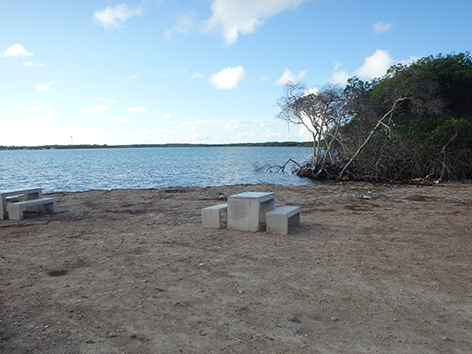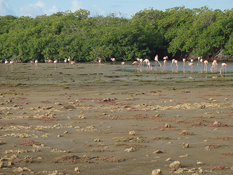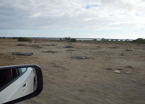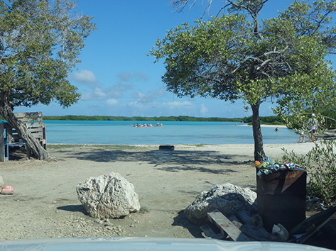 Onderweg na de afslag op Kaminda Sorobon bij Yatu Largu tegenover Sorobon Beach stoppen we eventjes. Daar zien we een mooie doorgang bij de mangrove maar het is er veel te ondiep. Hier gaat je kunstaas verspelen dus we karren weer verder naar Cai Beach.
