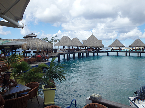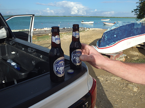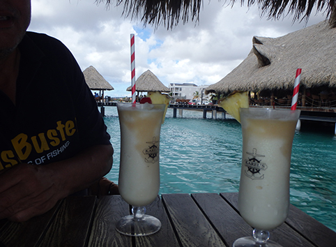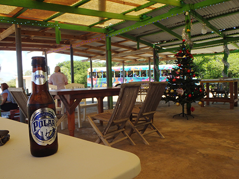 We gaan een biertje doen in die enigste uitspanning die er staat. Praatje maken met de weinige mensen die er zijn als plotseling de bus is vertrokken. Wat gaan we nog doen vanmiddag. Eerst maar wat eten maar als Marco weer koud bier gaat halen komt die tot de conclusie. Hier niet. Aardige mensen hoor maar zonder elektra en water en een op zijn zachts gezegd rommelige keuken besluiten we bij het water in Kralendijk te gaan bikken. Ik aas al van het begin van de vakantie op een rode snapper op mijn bordje.