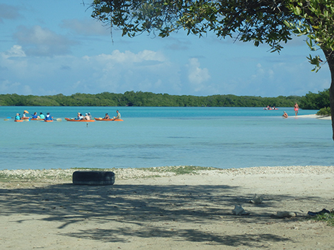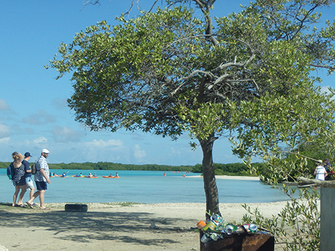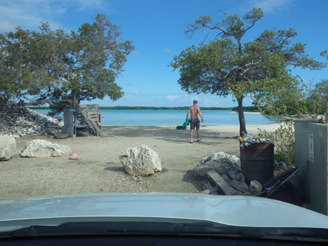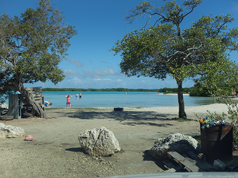 Marco heeft zijn zinnen gezet op een Tarpon te vangen en loopt nog eventjes naar achteren om richting de mangrove bossen te gooien met een grote popper. Ik denk dat het al veel te druk is op dat strandje dus hij gaat eventjes alleen de wandeling maken die we gisteren al hebben geïnspecteerd. Maar hij is nog niet weg en ik kan vanuit de koele auto zien dat het helemaal vol loopt met vakantiegangers die allemaal over het strand naar achteren wandelen door het water, peddelen en zwemmen.