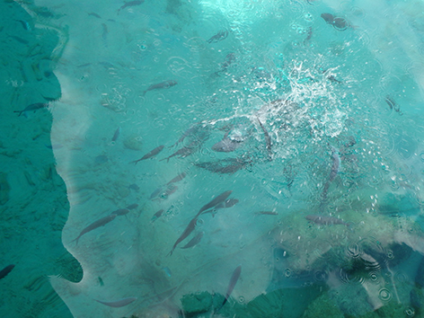 Mijn bord is zo goed als schoon. Alles wordt opgegeten door die vissen.