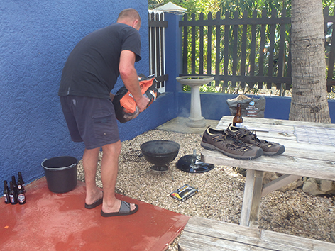 We maken de vis spullen klaar voor morgen. Wat chillen met de Canadese buren.