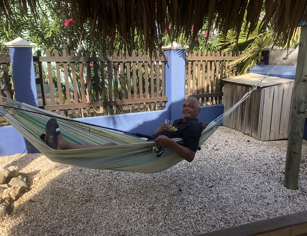 Dit kan ik heel lang volhouden. Wat een heerlijke temperaturen. Ik krijg wat berichtjes door en zal zelf ook een foto gaan posten. Dus mijn glas opnieuw vullen en vraag Marco een foto te maken in de hangmat.