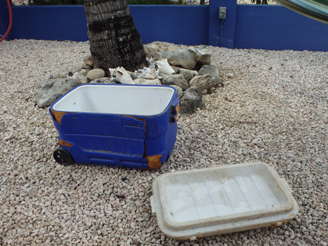 Voor morgen afgesproken met Bruno dat we ijs mee nemen om de vissen koel te bewaren. We zien er wel naar uit om te gaan vissen met dioe kreeftjes etc. Die koelbox ze noemen het een Juk moet wel ff schoongemaakt worden vindt Marco. Die hebben we gisteravond nog opgehaald ergens bij een vriend in de bergen. Zo kom je nog eens ergens.