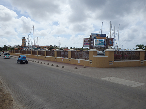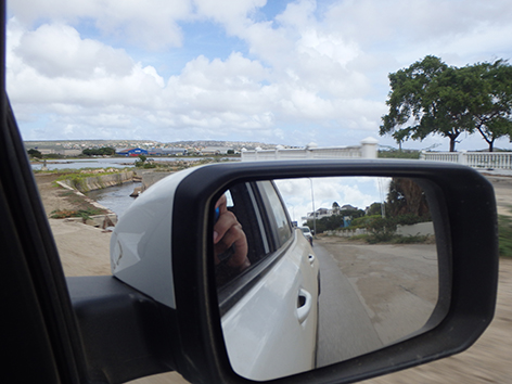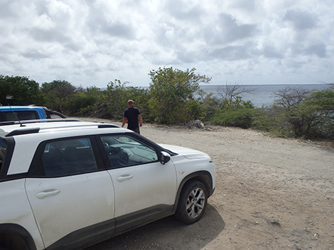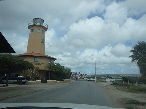 We rijden aan de noordkant Kralendijk uit langs dat goede plekkie Harbour Village Marina waar je dikke vissen twee meter van je vandaan ziet zwemmen maar heel moeilijk zijn te vangen.