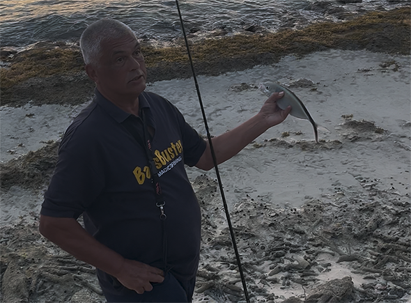 Onze vriend de Local vertelde al dat die stekelige vis je moet onthaken door er een emmer op te zetten zover dat je bij de haak kan zonder de vis aan te raken. Want dan is het gedaan met je vakantie en hoop je dat je het ziekenhuis kan vinden. Want het is geen spartelen meer hoor wat een kracht heeft daie vis. Bij Marco wil het ook niet vlotten. Zeker niet die Tarpon die boven aan zijn lijstje staat. Wel steeds na de eerste worp met kunstaas wel vijf, zes volgers van dikke veertigers. De vissen die we vangen om avonds op onze barbecue te gooien maar dan wat groter. Maar al na de tweede worp zijn het er twee of drie en daarna kennen ze het kunstaas wel. Veel wisselen dus en steeds anders binnen draaien.
