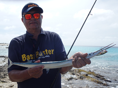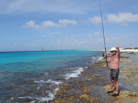 We gaan weer naar dat gepen plekje waar we zo succesvol waren twee dagen gleden. Na een paar uur smijten willen we aanbeten voelen en dan maar gepen vangen. Dat is ook gaaf. Daar was elke worp raak. Dat is aan de andere kant van Kralendijk halverwege de zoutmijn ook aan de West kant van Bonaire.
