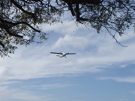 Dan plotseling een klere herrie. Komt er een propelor vliegtuigje vlak over ons heen scheren. Zitten we voor de landingsbaan en achter ons net over de weg heen is de landingsbaan. We schrikken ons een hoedje.