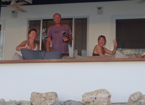 We gaan een biertje doen thuis om dat allemaal weg te spoelen en wachten op ons uurtje voor de duister invalt. We moeten ons avond eten nog vangen want restaurants zijn niet open vandaag de eesrte dag van het nieuwe jaar. We wachten eigenlijk te lang weer door dat heerlijke koude biertje thuis dus zijn we eigenlijk een half uurtje te laat bij het water terwijl het naast ons huis is. Er zitten twee buren tussen. En op de hoek aan het water bivakkeren Remco, Mischa en dochterlief Lola uit Nunen. Die hebben we al ontmoet toen we tegelijkertijd aankwamen alweer zeven dagen geleden. Wat gaat de dagen toch altijd snel op vakantie