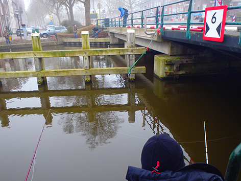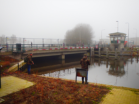 Als ik buiten kom kan ik nog net een filmpje maken van rennende hengelaars. Vandaar een screenshotje van het filmpje. We kunnen beginnen.