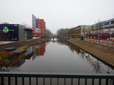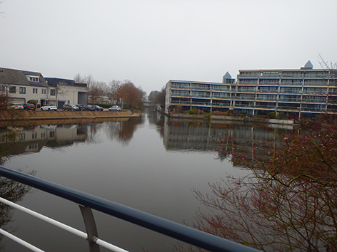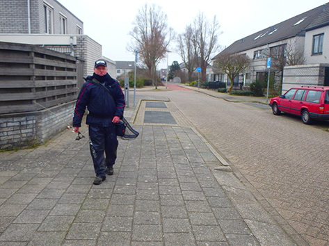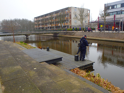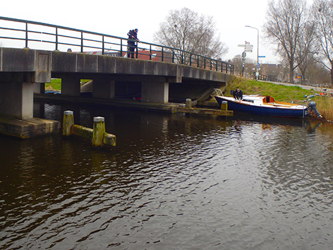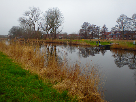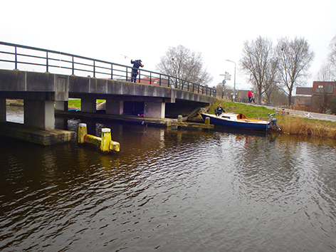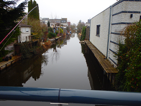Wij gaan ook verder zoeken en terwijl we richting de volgende brug gaan waar we net over heen zijn gekomen toen was daar nog niemand. Maar de hengelaars van net in die camouflage kleding gingen er al lopende heen. Dan besluiten we gewoon af te slaan de wijk in.