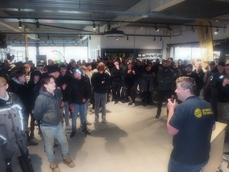 Gelukkig is de koffiemachine weer gemaakt na het bezoek aan het kleinste kamertje. Een bakkie pleur kunnen we wel gebruiken na twee uur in de auto te hebben gezeten. We kijken nog wat rond en spreken weer wat mensen als dan na de briefing iedereen naar buiten kan voor de groepsfoto.