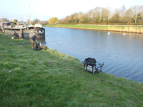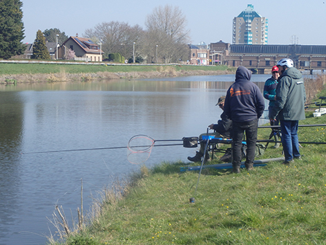 Ik pak plek twee want gaat toch feederen dan kunnen Jan en Willy op het lage stuk vissen met de vaste stok. Maar al snel is Nuno er en die gaat rechts van me vissen. Nogal een eindje van me vandaan die heeft waarschijnlijk een geheim recept. Hij zit zelfs zover dat als Jan Wulffraat komt die er makkelijk tussen kan vissen met de vaste lat.
