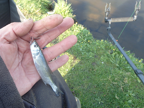 Ik heb gekozen alleen met groot aas te vissen. Een dikke worm of drie kleintjes om grote vis de tijd te geven dit te vinden tussen al dat grut. Ik ziet het eerste uur toch weinig op de stek gebeuren op die ene lijnzwemmer na al gelijk binnen een kwartiertje. Dat is gunstig lijkt me want die brasems houden nietr van rumour, drukte op de stek maar of ze zwemmen niet of ze zijn er niet want het blijft angsvallig stil op mijn top. Maar dan ziet ik toch dat kleine vis mijn geknipte wormen toch hebben gevonden en begin ik ook klein grut te vangen.