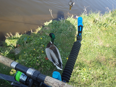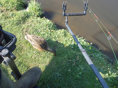 Elk jaar weer op deze stek zoekt dit paartje onder mijn paraplu of Rive kist bescherming. Vooral as de mannetjes bronzig zijn dan moet haar mannetje werken en tot ver vliegen om er eentje te verjagen. Dan vlucht het vrouwtje onder mijn viskist. Het was voor mij niet veel vandaag maar weet wat ik over drie dagen dus niet moet doen en dat is ook wat winst. Alleen Nuno weet nog op de kop natuurlijk twee brasems te vangen in het laatste uurtje. Ik zal zijn geheim niet verklappen.