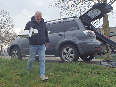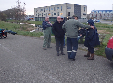 Nee warm is het niet en als het zonnetje achetr het wolkendek verdwijnt is het zelfs koud. Aad is morgen jarig en heeft een traktatie. Wat is dat dan lekker zo’n warme sauseisen broodje. Bedankt Aad die was heerlijk.