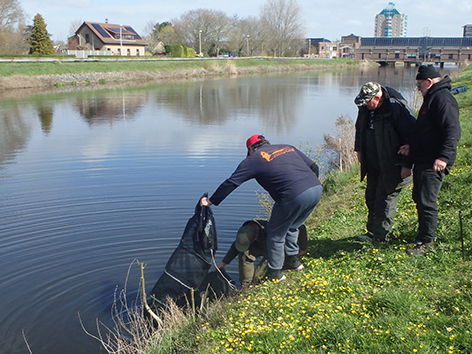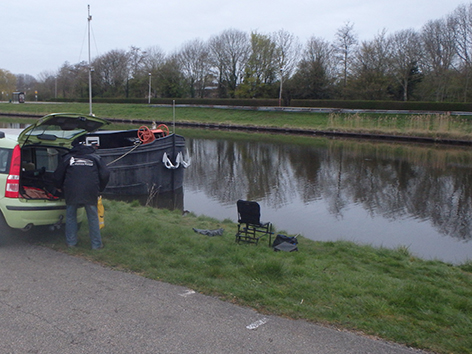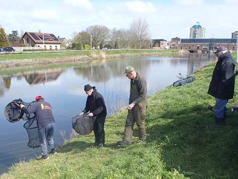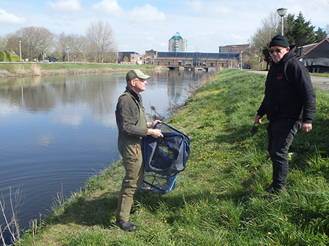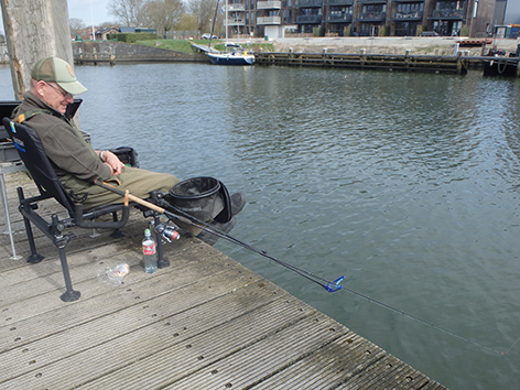 Dus vissen we op 1 april 2026 aan het Kanaal door Voorne ter hoogte van de Bieb.