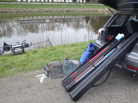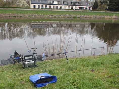Want ik wil met de vaste stok gaan vissen en dat heeft toch meer tijd nodig om alles op te stellen als met de feeders die kant en klaar in mijn foedraal steken.