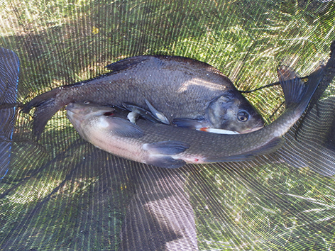 De brasems van Gerbrand hebben geen gewicht die lijken al wel afgepaaid. Dat valt hem vies tegen. Mijn brasem weegt bijna net zoveel. Daarentegen heb ik weer 100gram minder dan JanJ die het eerste uur dus gelijk de klein vis op zijn stek had en ook één brasem heeft. Zo blijft vissen spannend tot de laatste minuut.