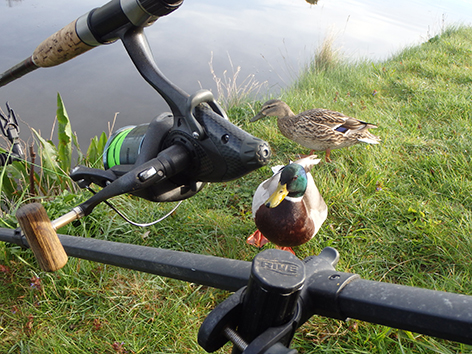 Gelijk zitten er een paar eenden onder mijn station en nu eten ze de wormen uit mijn hand.