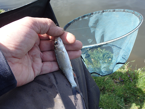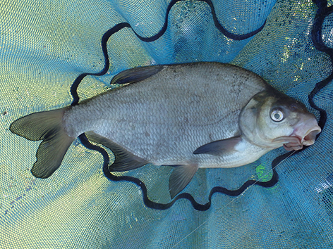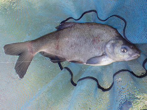 12.11 uur. Eindelijk kan ik dan een brasem netten.