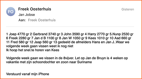 Dan is iedereen er die vandaag meedoet. We vissen vandaag met twaalf man want Hans JanJ hebben afgezegd.