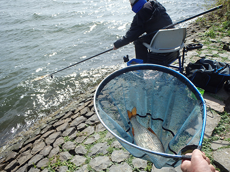 Ik kan er wel bij zitten hoor zegt Joep dan maar als ik aan kom zit die alleen. Zijn maatje kan de garage niet uit. Daar staat een auto voor en hij weet niet van wie die is. Das lekker dan. Ik neem dan het plekje links van hem achter een struik. Zit ik wat meer uit de wind. Inmiddels heeft Joep er al 12 in zijn netje liggen en ik moet mijn spullen nog uitladen.