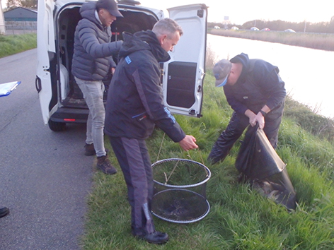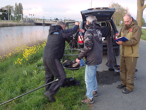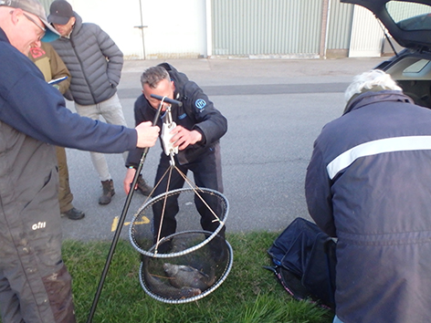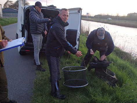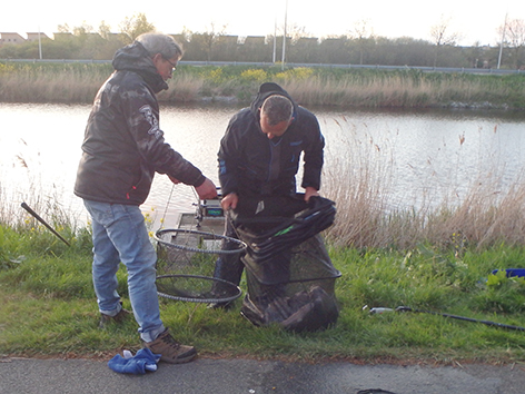 Ik maak twee voerplekken eentje aan de overkant en één halverwege het Kanaal. Drie korfjes naar het midden en dan twee naar de overkant en de derde gaat met een onderlijntje. Ik heb al gelijk beet. Het begint al gelijk goed ik ben de eerste met van de nul af. Das lekker.