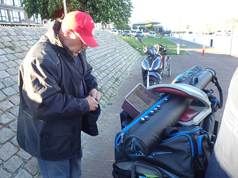JanB en Nuno zetten ’s morgens uit en JanB heeft de nummertjes. Altijd pak ik dan de laatste twee uit het zakje en steevast pakt Jan dan mijn linkerhand. Nu neemt Nuno de honneurs waar van JanB want die ziet een paar weken in Curaçao. Die wil hetzelfde spelletje maar dan andersom. Ik heb dus het op één na laatste nummer vandaag. Ik kies dus het nummer dat normaliter JanB zou hebben zijn linkerhand en dat pakt niet slecht uit vandaag. Want nu blijft er voor Nuno stek vier over precies in het midden dus.