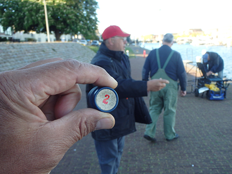 Dat ik het laatste nummer pakt komt omdat ik ook altijd de laatste was die aankwam op de visplek. Ik ben de jongste dus de Benjamin van de ploeg en dat alleen vind ik al leuk. En men vond ook altijd dat ik het beste plekkie lote. Dan neem ik in het vervolg het nummertje dat jullie voor me overlaten en zo is het gekomen dus. Ik vertrek altijd om half acht en het is nooit langer dan tien minuten rijden. We loten officieel om acht uur en vissen dan om half negen. Maar de mannen hebben visdrang en dat op die leeftijd en staan dan al om half acht te trappelen van ongeduld.