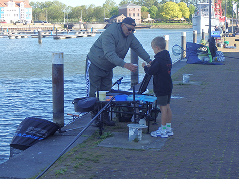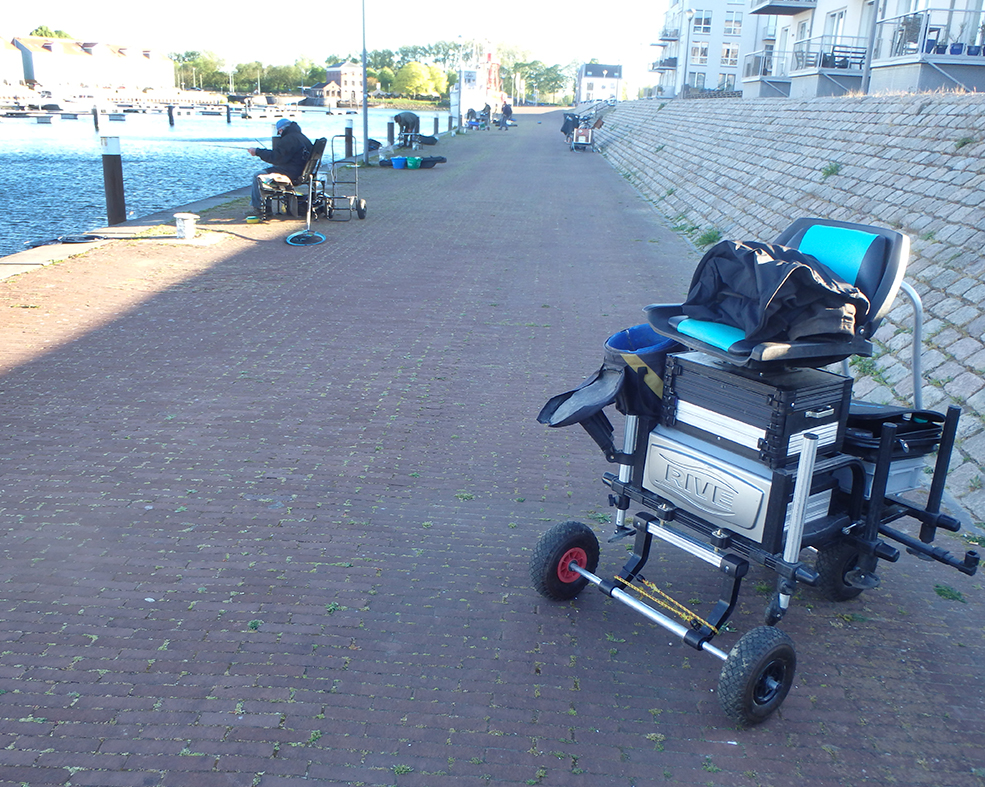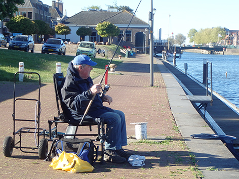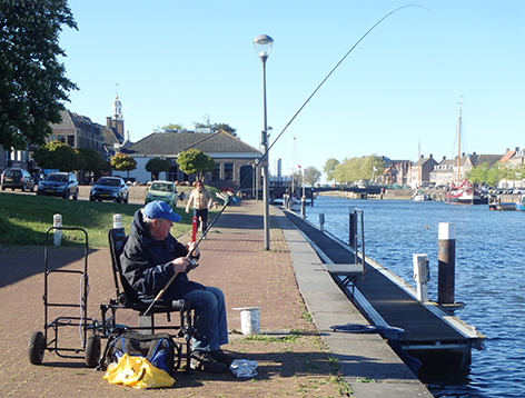 We vissen net als vorige week weer aan de KoningsKade in de vesting. Vandaag mocht Nuno zeggen waar te vissen. Het is er goed vertoeven zeker nu met Bfr6 Noord Oosten wind tussen de hoge huizen. Wel lastig ingooien want de wind staat in het verlengde van de haven.