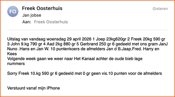Vorige week iedereen lekker gevangen. Dikke platten trekken festijn was het behalve dan de eerste twee op de eind nummers. Daar zaten de volgende dag een groep Engelsen en vingen ook niet op de feeders maar met de vaste stok des te meer. Dik in de dubbele cijfers zaten ze dezelfde waarvan ik die casters heb gekregen verleden zondag.
