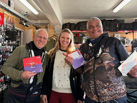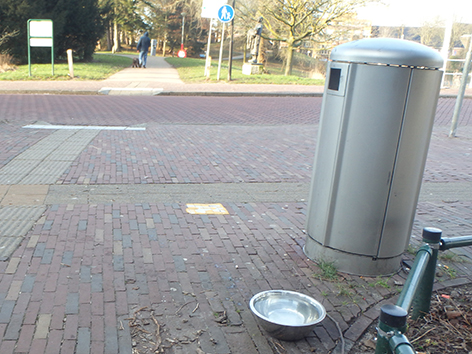 13.19 uur. Onze noodsprong.Oja, we moeten nog vijf stukken vuil meenemen en dat is hier geen probleem. Er ligt zelfs waardepapier.De zakjes zijn gratis maar de drollen liggen er om heen.Hier kom ik mijn naamgenoot en zijn teams tegen die een mooie goodiebag heeft geregeld.