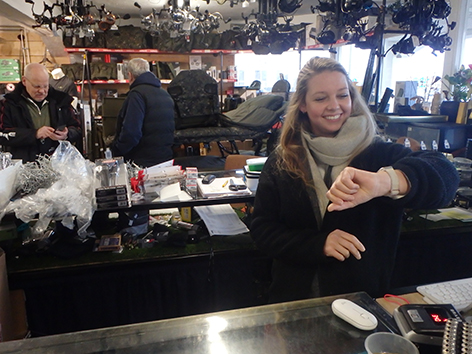 Gelijk onze bovenkleding uit want het is heerlijk warm binnen.