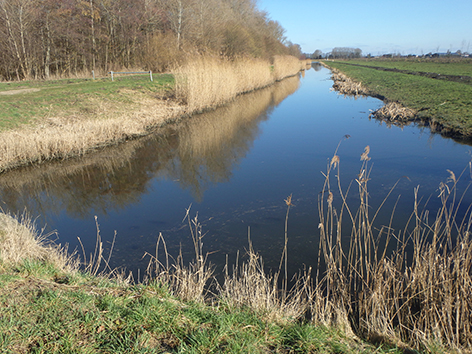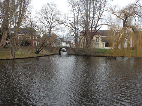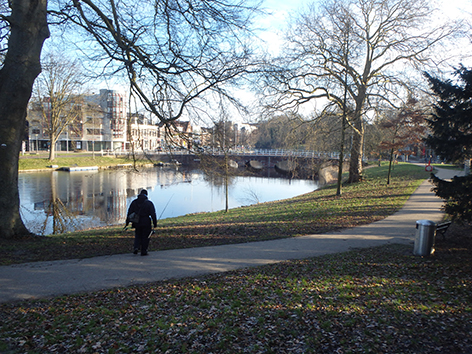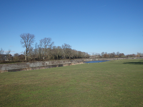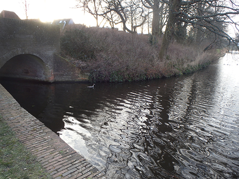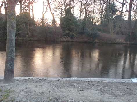 De vestinggracht waar we aan de overkant zodadelijk zullen gaan vissen.Dat koude water zal niet best zijn voor onze gevoelige gevlochten vislijnen.