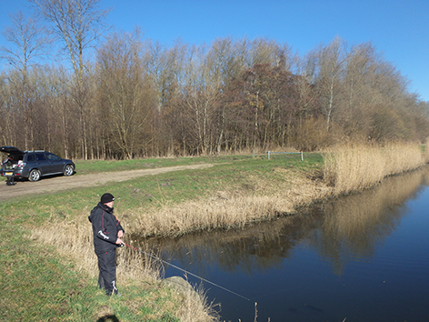 Net voor 12 uur in Nederland staat ik nog met een hengel in mijn hand.