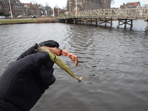 Misschien door het koude weer zijn hier onze geschubde tegenstanders.Lijkt een beetje op Utrecht. Dat moet hier zomers toch wel gezellig zijn.Jammer we kunnen niets trickeren aan de Nieuwlandersingel.Wat een mooi gaatje die ik goed kan aangooien hiervandaan.13.55 uur. Onze laatste worpen naar de overkant