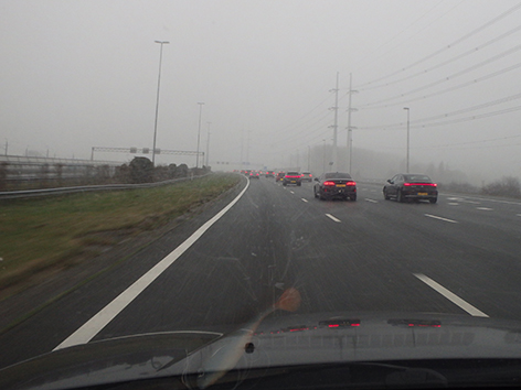 De snelheid gaat er uit.17.12 uur. Het valt gelukkig allemaal wel mee op de weg.