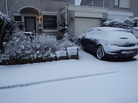 Hier in Hellevoetsluis sneeuwt het al vanaf twee uur.